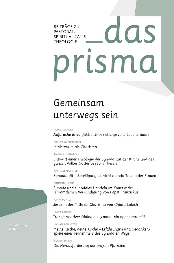 Die vorliegende Nummer will in der aktuell gerade im deutschen Sprachraum virulenten Diskussion rund um die Thematik anhand verschiedener Beiträge den Blick dafür schärfen, worum es bei der Synodalität im Wesen geht, ihr aus der Perspektive unterschiedlicher theologischer (aber nicht nur) Disziplinen auf den Grund zu gehen und Beispiele aufzeigen, wie in verschiedenen Bereichen synodale Vorgänge im Leben durchzubuchstabieren versucht werden. In der Beleuchtung der Thematik kommt nicht zuletzt von Chiara Lubich ein starkes Licht, da das ihr von Gott geschenkte Charisma der Einheit eine zutiefst trinitarische Prägung aufweist, die sich sowohl in ihrem Schrifttum als auch im Leben des von ihr gegründeten Werkes Mariens (der Fokolar-Bewegung) zeigen lässt. Dies betrifft auch die Strukturen der Leitung, die Dynamiken der Entscheidungsfindung und – gemäß dem Charisma der Einheit – letztlich alle Aspekte des Lebens. Mit "Jesus in der Mitte" – so der Terminus, den Chiara häufig für diese trinitarische Dynamik verwendet – leben wir als Kirche im Kleinen wie im Großen synodal gemäß dem Dreifaltig-Einen und in IHM auch untereinander. Eine solcherart gelebte Synodalität braucht niemand zu fürchten. Sie vermag vielmehr auch heute die Menschen neu für Gott und seine Kirche begeistern.